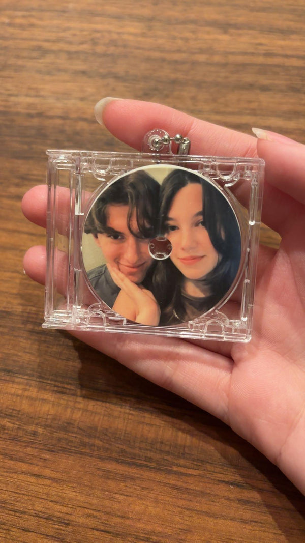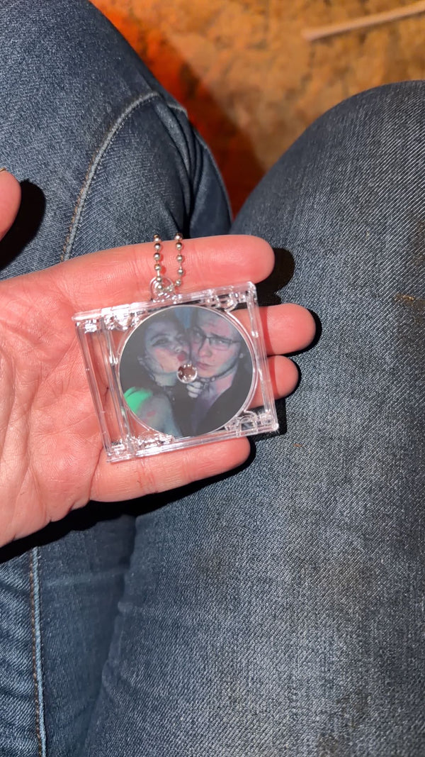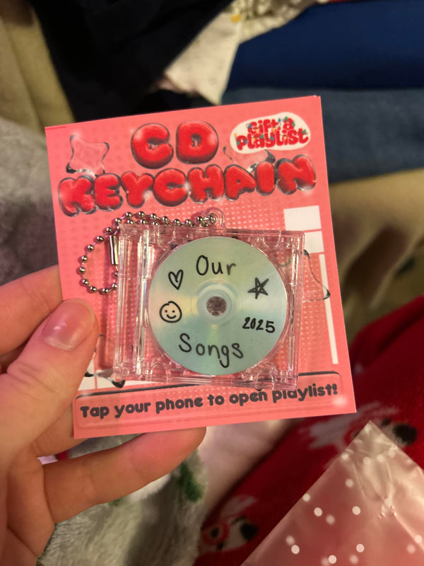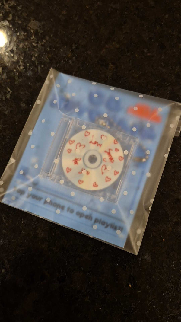 When you tap your phone against the gift, your playlist will pop up! It uses your phone's NFC, the same technology used for Apple Pay.